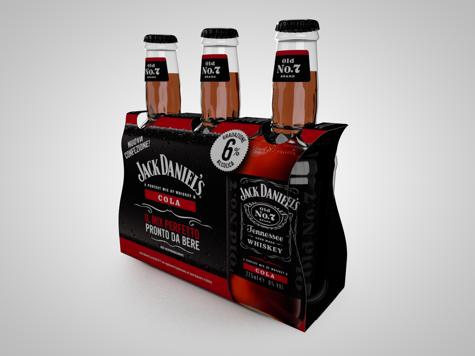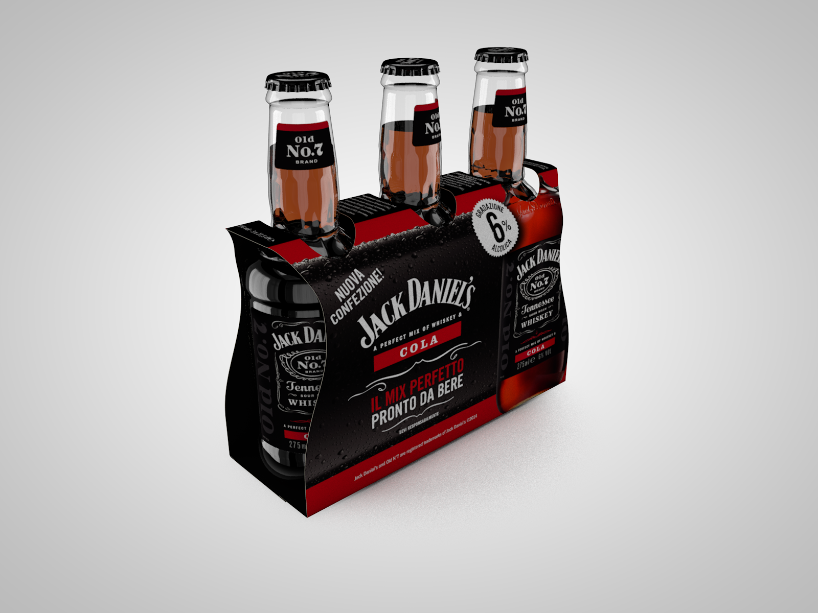 "Jack Daniel's" & Cola" new bottle and packaging. 3d modeling - texturing - light setup - rendering - compositing